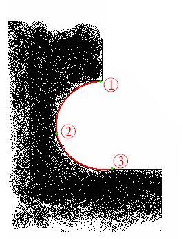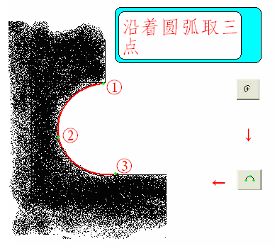 注意:三個或三個以上的點構成圓弧,至少取三個點。